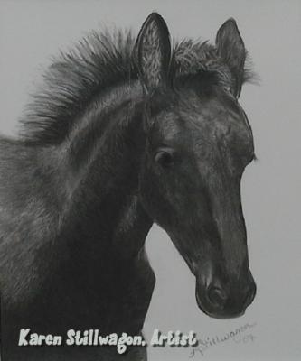 Charcoal Drawing of a Friesan Colt, offspring of Tzar, National Champion