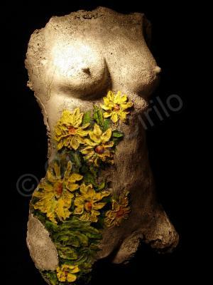 "Nude Girl Life Size Torso With Flowers" - by Cirilo Cirilo