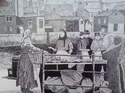 Pen and ink drawing,Fishwives,Grimsby (1800)