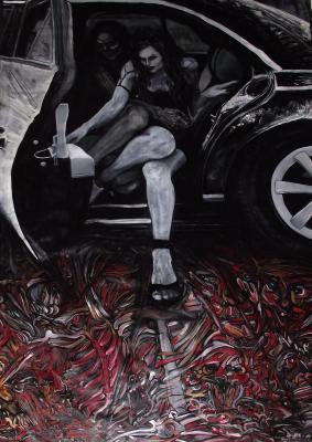 Oil on canvas, 150 x 200 cm , fantasy, horror ,realist, symbolic and original style and artwork