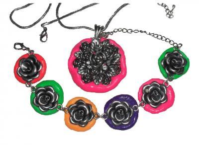 A set: pendant & bracelet. This extraordinary, bright & appetizing set makes you very sexy, desired and open for the miracles of love. Metal & polymer clay «Modelina», roses are hand-made.
