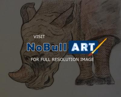 This rather battered so to speak White Rhino was seen recently on a daytrip. He was missing one horn as shown in the drawing and just had a unusual shaped stump and facial scaring. Hence the name